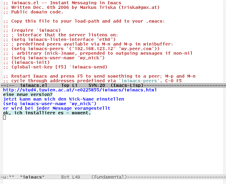 `imimacs-peers'. C-0 F5 sends a message to the peer you got