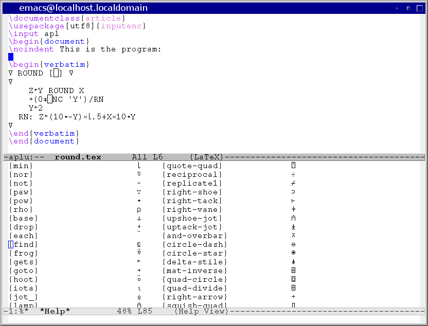 UnicAPL - Unicode APL code in GNU Emacs and LaTeX